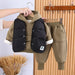 Color: milky white 23091 pocket zipper solid color vest fleece three-piece set, Brown 23091 pocket zipper solid color vest fleece three-piece set, Green 23091 pocket zipper solid color vest fleece-lined three-piece set