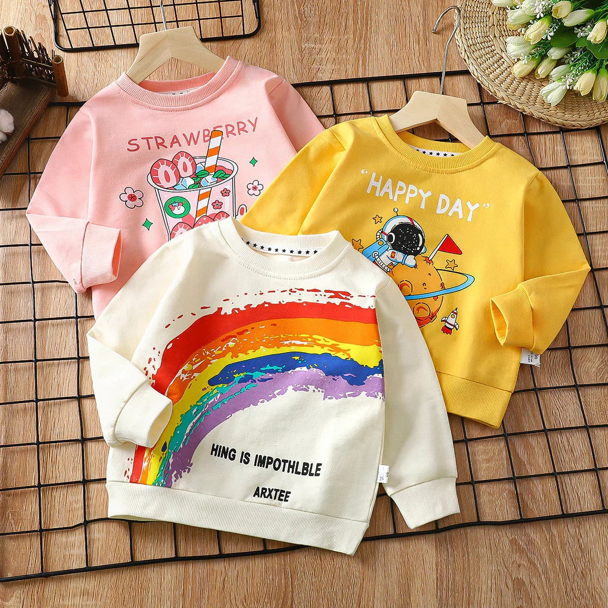Cotton Boys And Girls Long Sleeve T-shirt Unlined Top